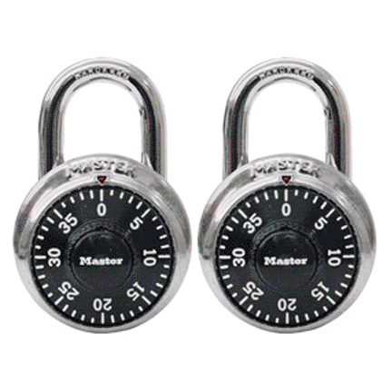 MASTER LOCK COMBINATION 3-DIGIT 1-7/8" STAINLESS BLACK PADLOCK 2KA 2PK 1500T