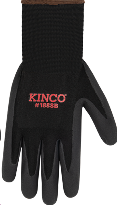 KINCO NYLON BLACK KNIT SHELL MICRO-FOAM NITRILE PALM BLACK GLOVE LARGE 1888B-L